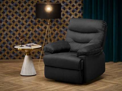 Fotoliu DRAGER cu recliner manual, catifea black 77x90-160xH105cm