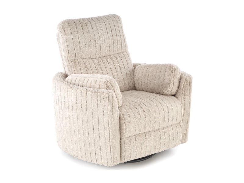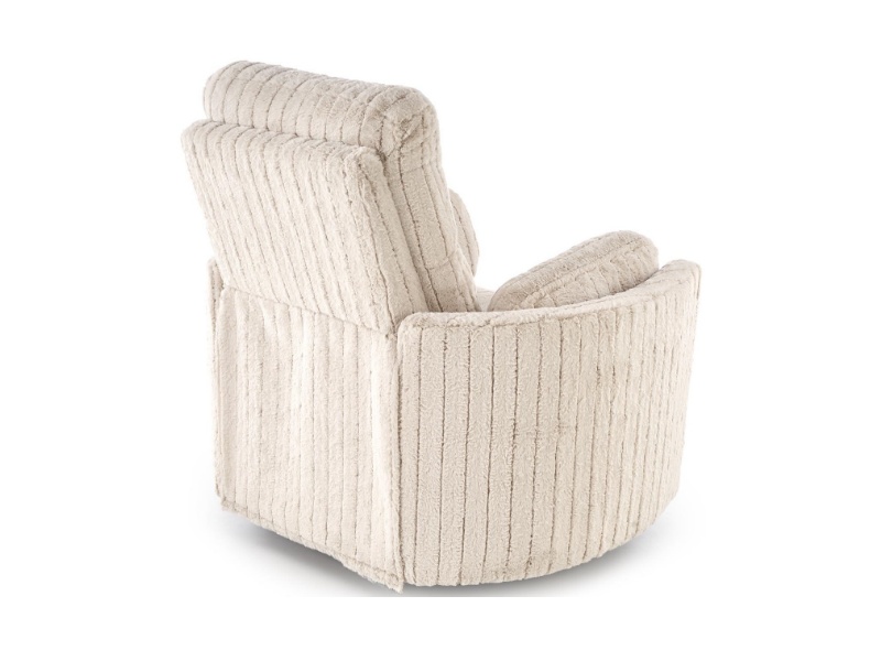 Fotoliu PEGAS rotativ cu recliner electric, incarcare USB integrata, functie de balansoar, material plusat bej, confortabil 110x110-170xH81-108cm