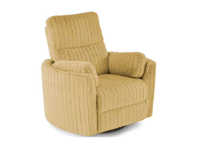 Fotoliu PEGAS rotativ cu recliner electric, incarcare USB integrata, functie de balansoar, material plusat curry, confortabil 110x110-170xH81-108cm
