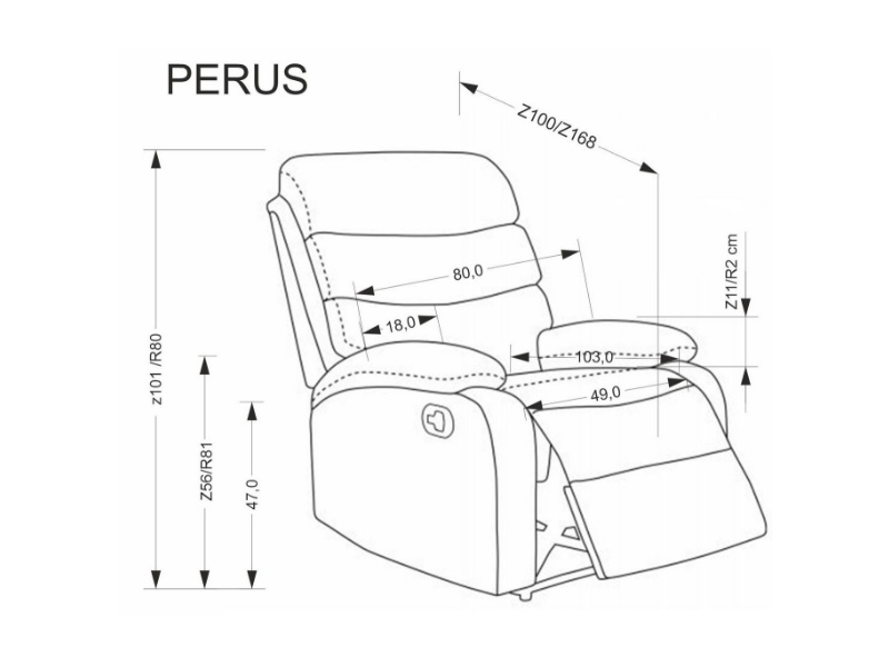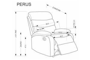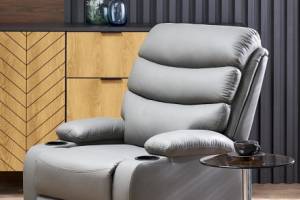 Fotoliu PERUS cu recliner, suport pentru pahare, ecopiele grey 80x100-168xH80-101cm