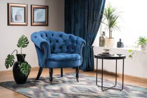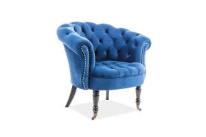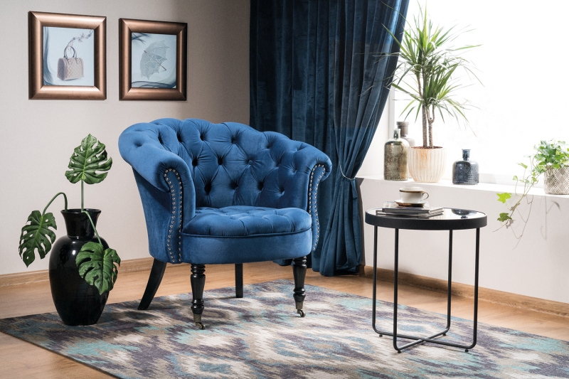Fotoliu PHILIPS VELVET catifea albastra, design chesterfield, picioare negre 78x87xH83cm