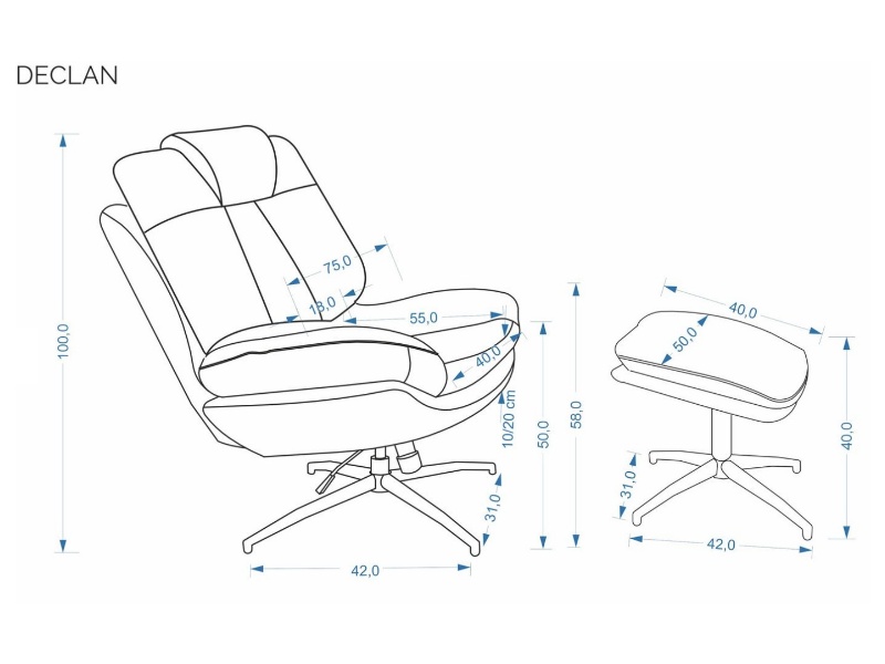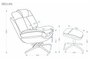 Fotoliu rotativ cu taburet DECLAN cu sistem de balasare, confortabil, material texil-plusat grey 75x42xH100cm