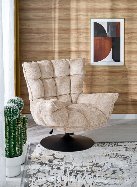 Fotoliu rotativ HAGEN cu functie de balansare, material textil-plusat beige 100x90xH100cm