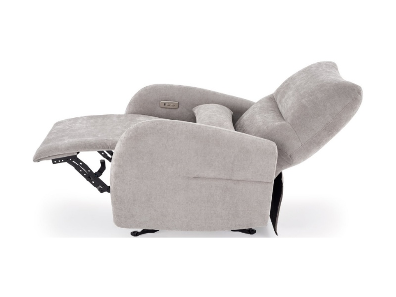 Fotoliu SAXON cu recliner electric, functie de leganare, port USB pentru incarcare telefon, material textil grey 55x85-155xH81-102cm
