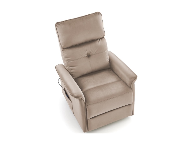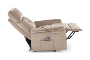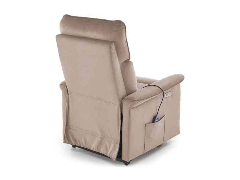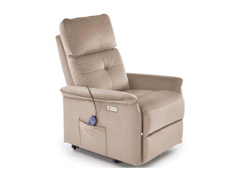 Fotoliu SEMIR 2 cu recliner electric, functie de masaj, port USB, buzunar pentru depozitare, confortabil, catifea beige 80x90xH108cm