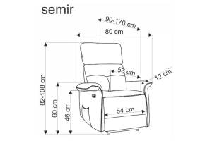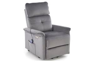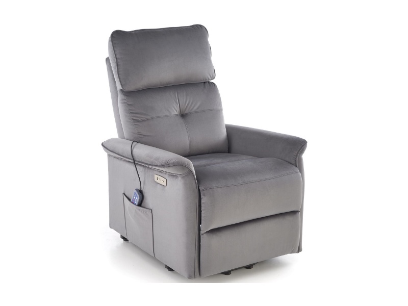 Fotoliu SEMIR 2 cu recliner electric, functie de masaj, port USB, buzunar pentru depozitare, confortabil, catifea grey 80x90xH108cm