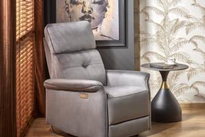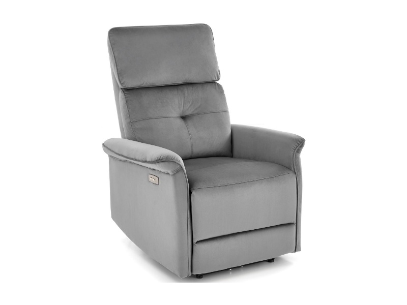 Fotoliu SEMIR cu recliner electric, port USB, confortabil, catifea grey 80x90xH108cm