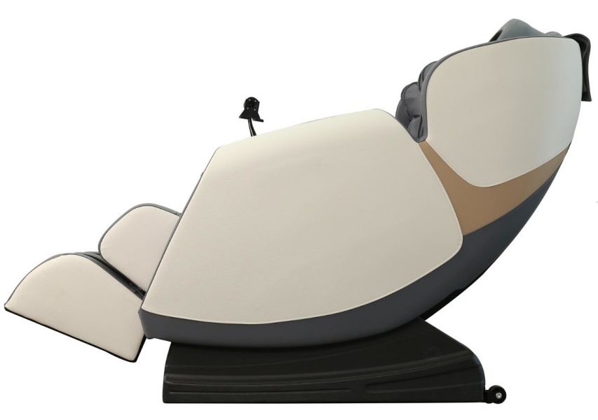 Fotoliu SOLARIA cu mecanism de masaj, incarcare USB integrata, difuzoare, functie de incalzire, spatar reglabil, ecopiele crem 50x140-187xH85-105cm
