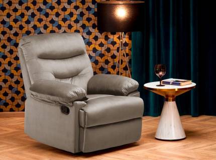 Fotoliu DRAGER cu recliner manual, catifea beige 77x90-160xH105cm