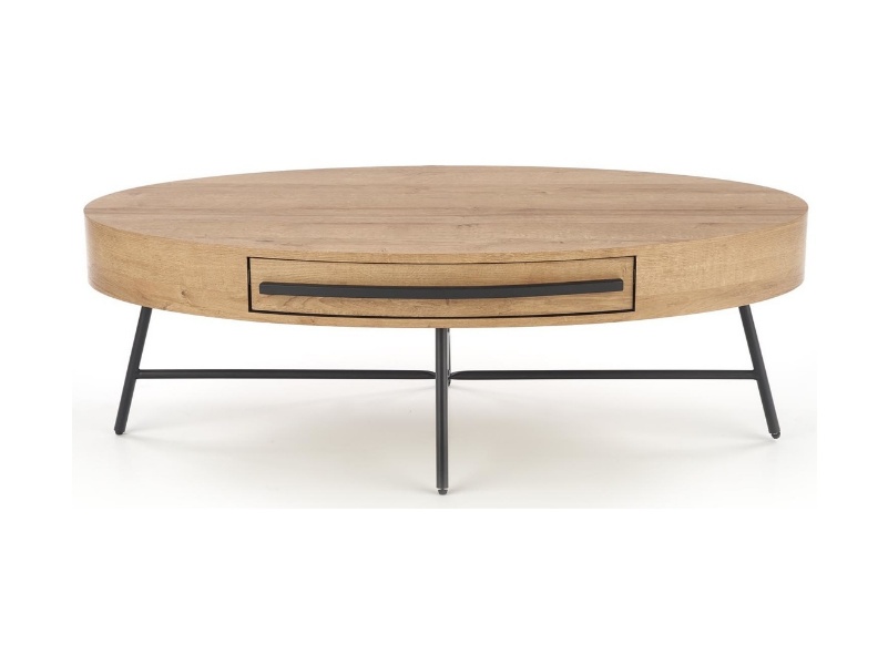 Masuta CAROLINA cu sertar pentru depozitare, din MDF furniruit nuanta lemnului, metal negru 120x60xH41cm