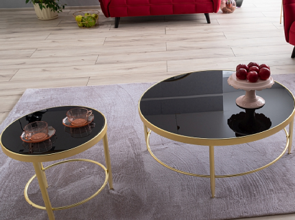 Masuta MYSTIC B din sticla securizata termorezistenta neagra, metal auriu mat 82xH40cm