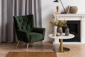 Masuta CERETO din PAL Egger cu efect de marmura alba, metal auriu 80x80xH45cm