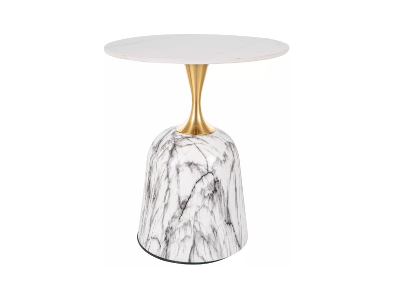 Masuta FAMA din ceramica cu efect de marmura alb lucios, metal auriu 50xH59cm