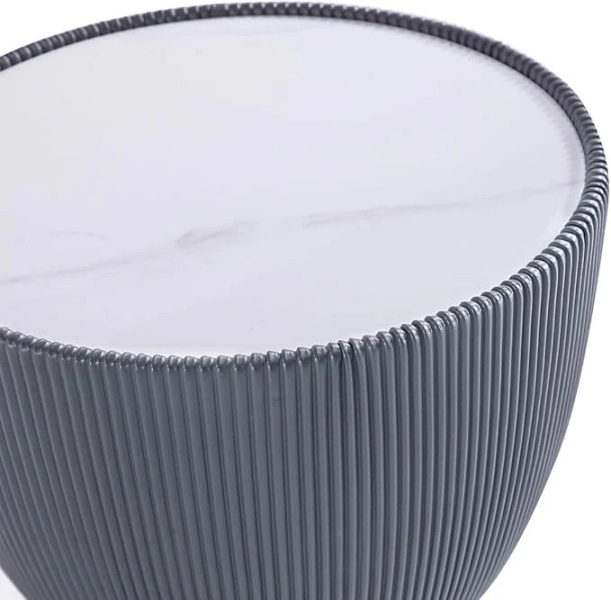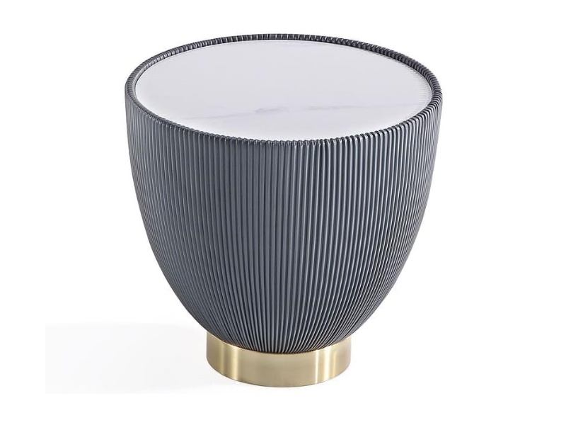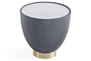 Masuta GRADO B din ceramica cu efect de marmura alba, ecopiele gri si otel auriu 47xH45cm