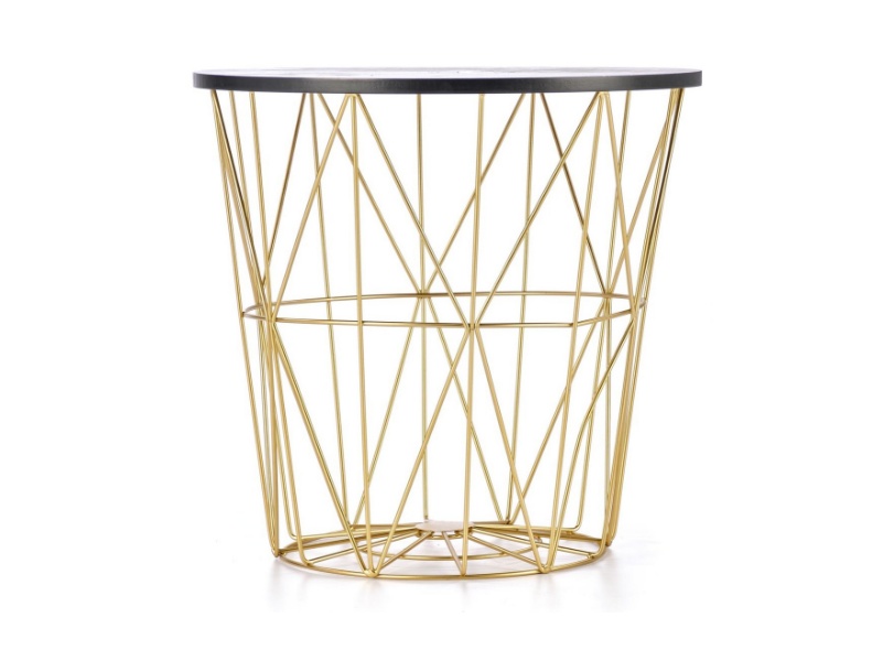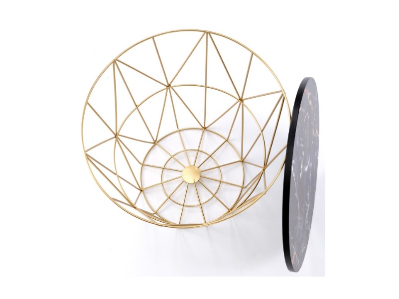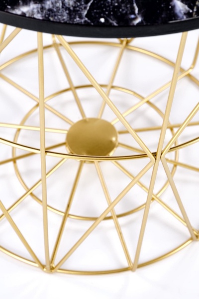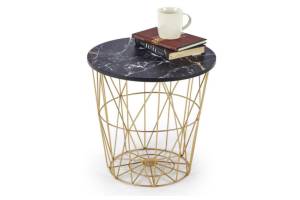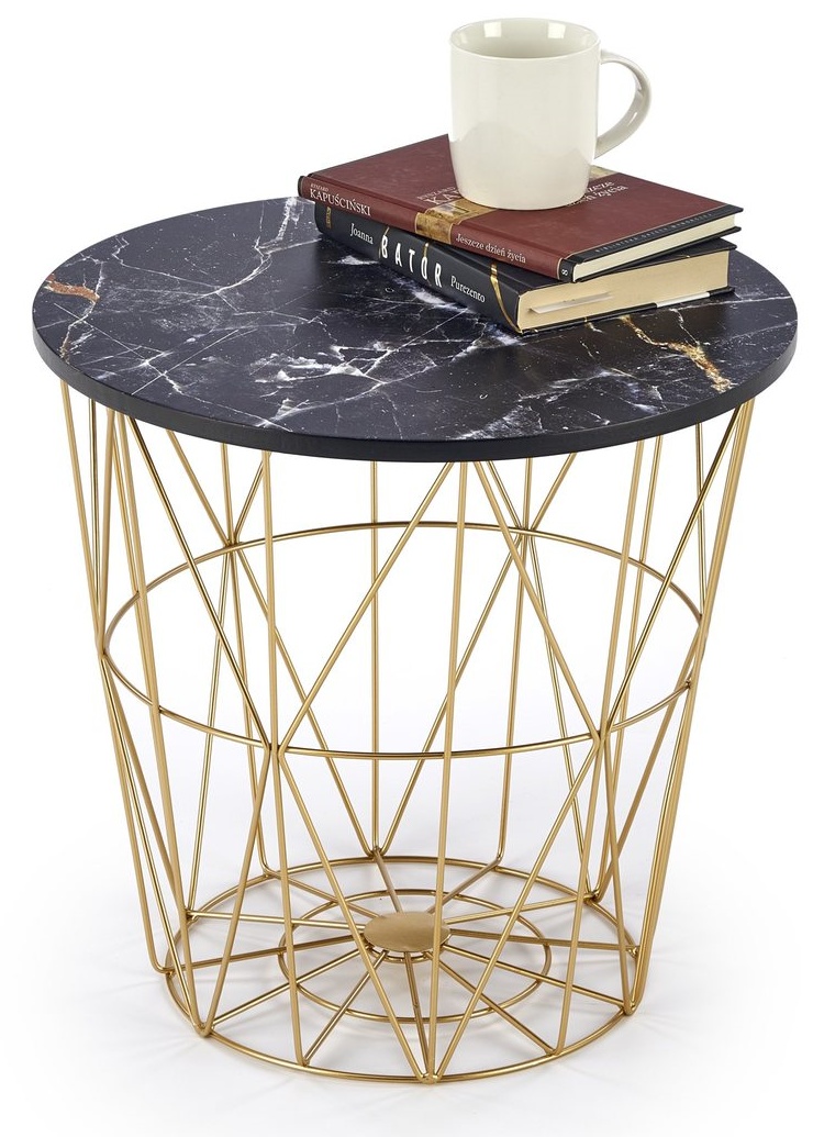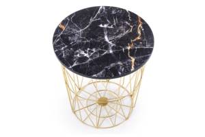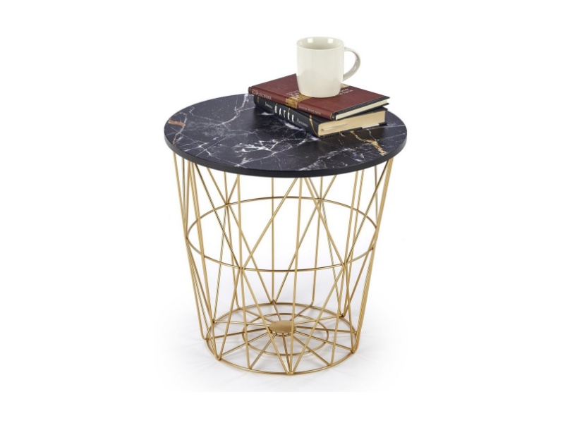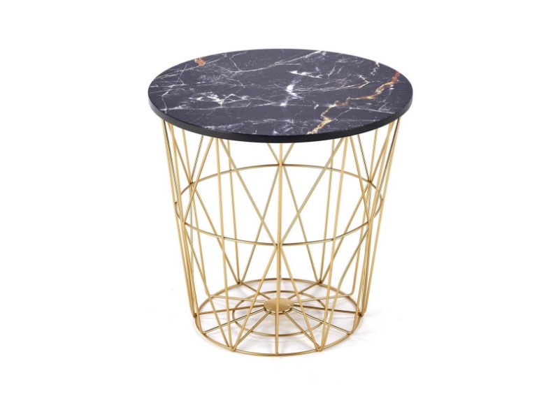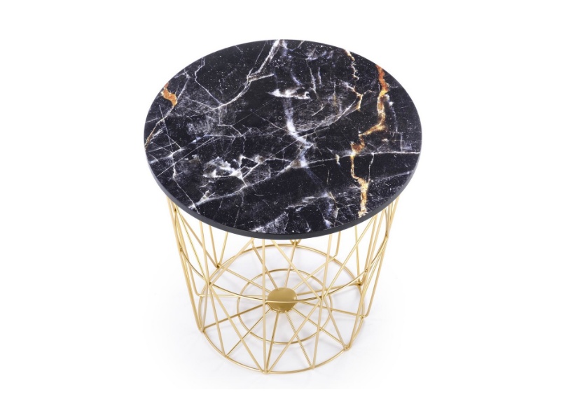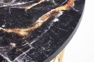 Masuta HARISSA G BLACK cu spatiu pentru depozitare vizibil, din MDF furniruit cu efect de marmura neagra, metal auriu 42xH41cm
