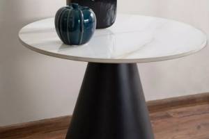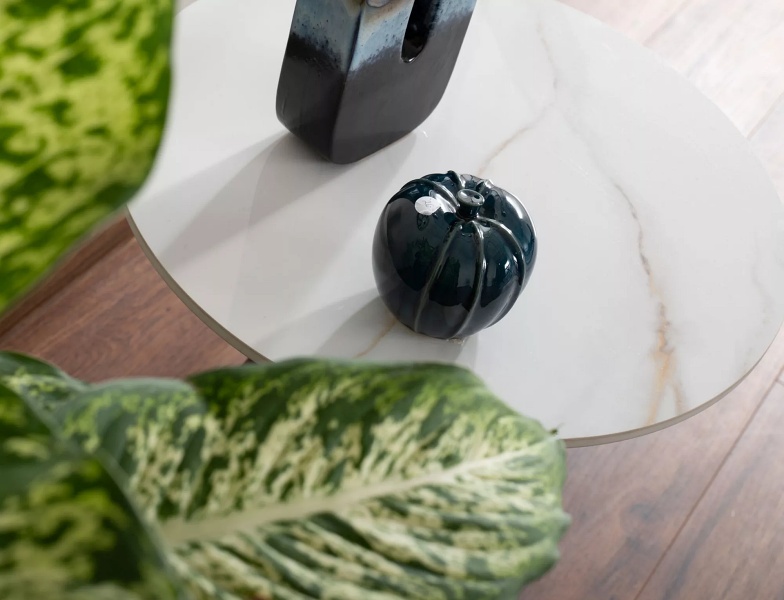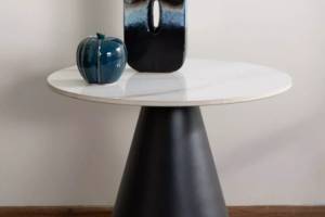 Masuta HILL din ceramica cu efect de marmuca alb lucios, metal negru 50xH46cm