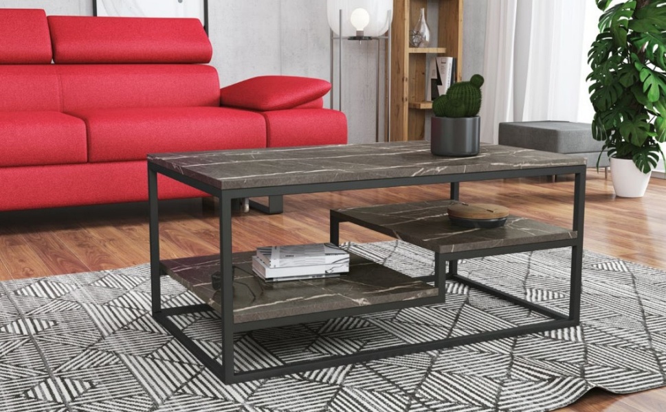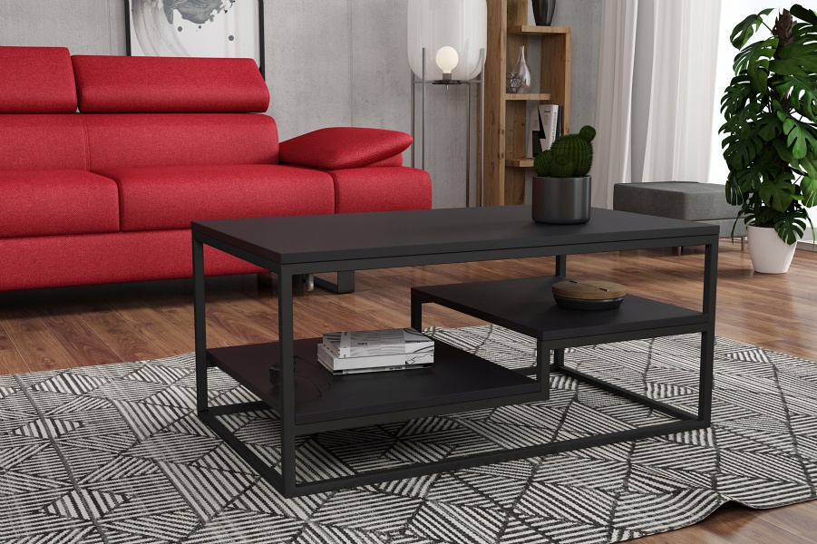 Masuta LETINO cu spatiu tip suport, PAL Egger, metal negru 100x60xH46cm