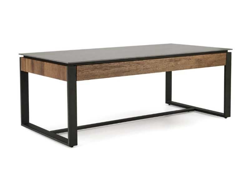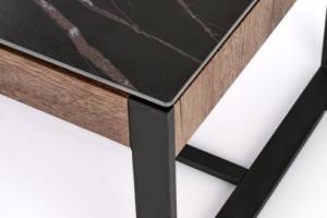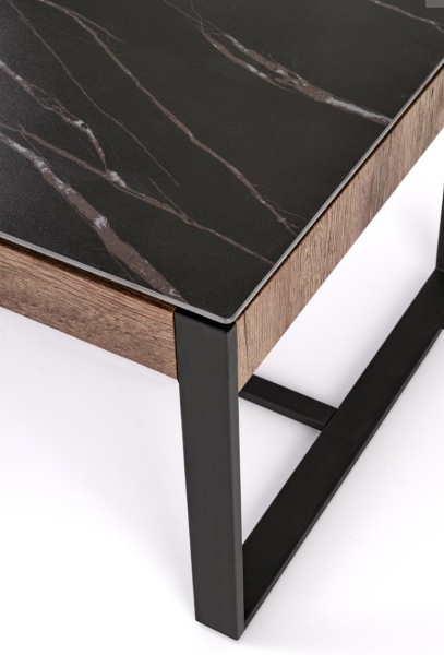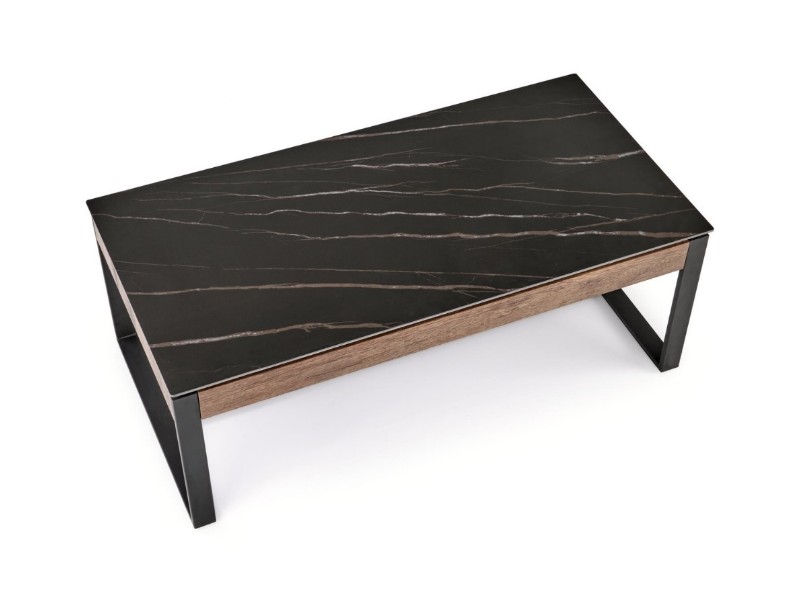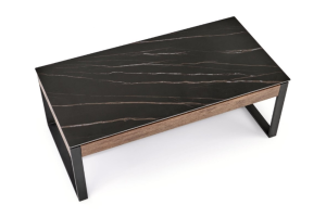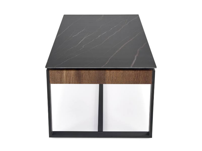 Masuta RAMONA din MDF furniruit si sticla termorezistenta cu efect de marmura neagra, metal negru 121x61xH45cm