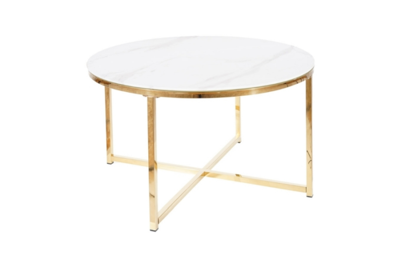 Masuta SALMA din sticla cu efect de marmura alba, metal auriu 80xH45cm