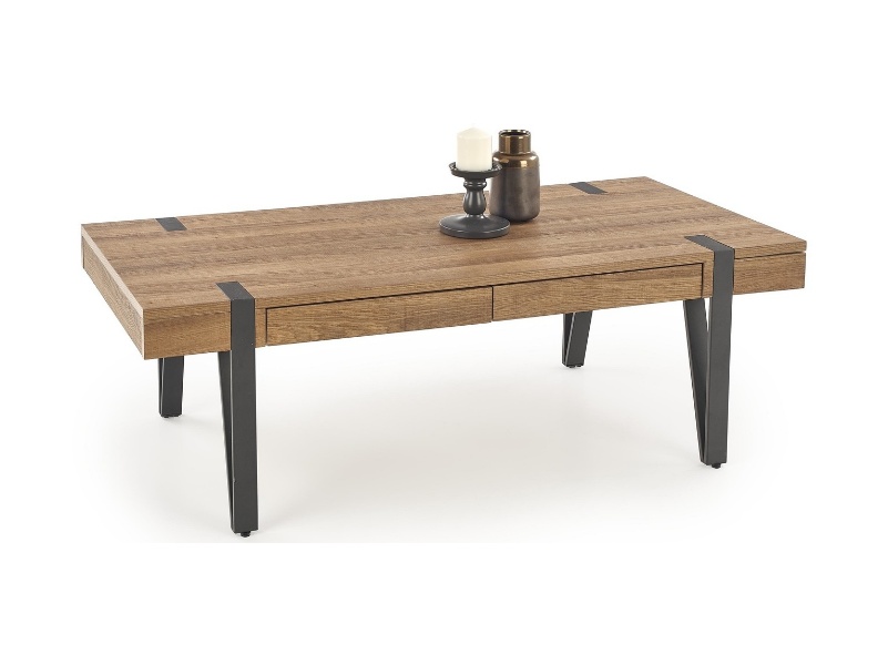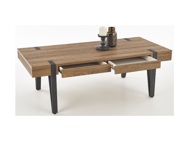 Masuta TULUZA cu sertare pentru depozitare, MDF laminat nuanta lemnului, metal negru 120x55xH41cm
