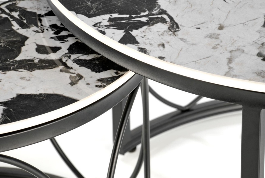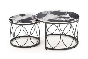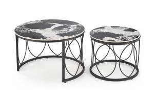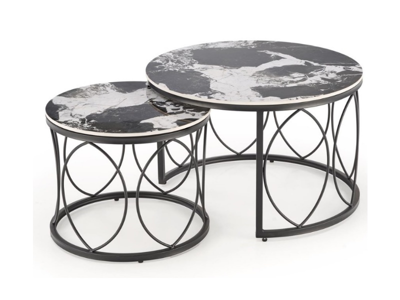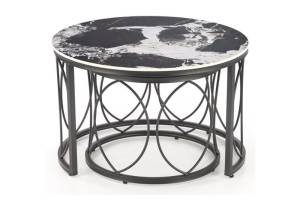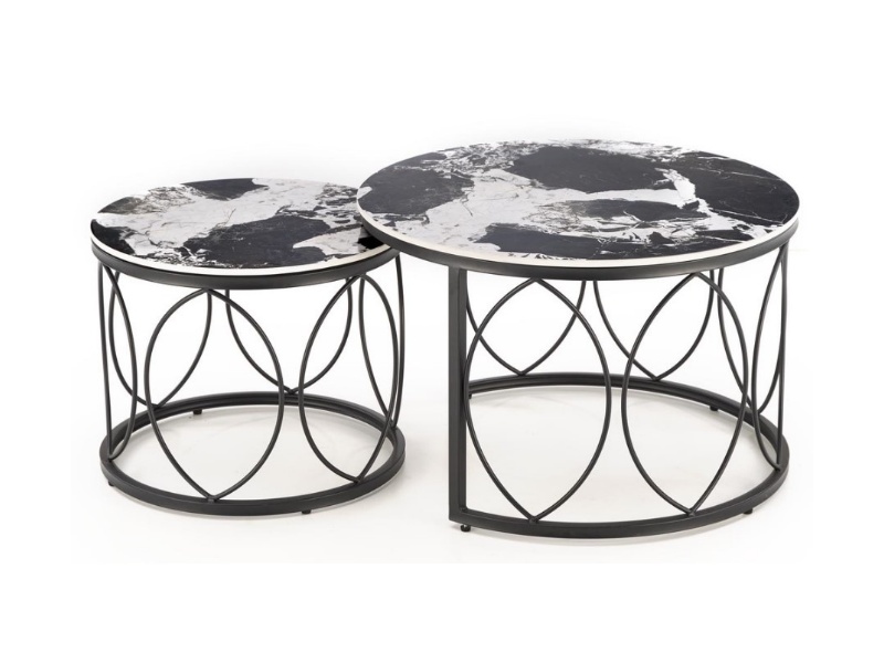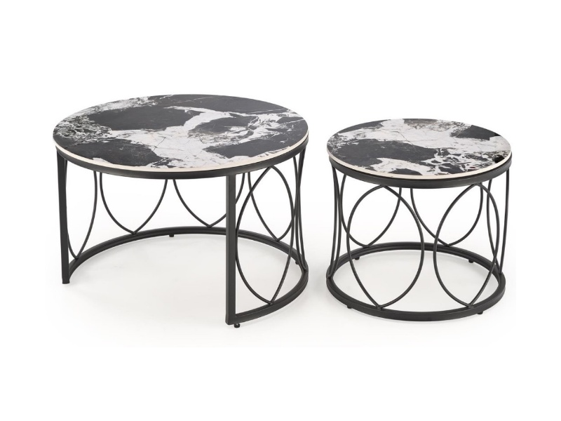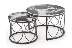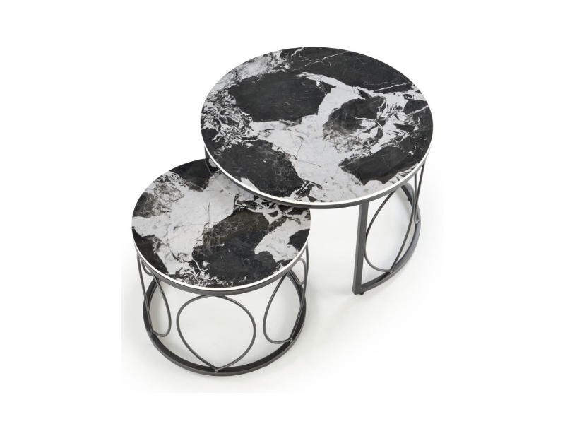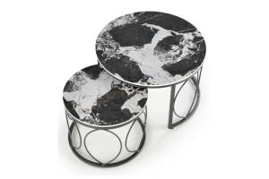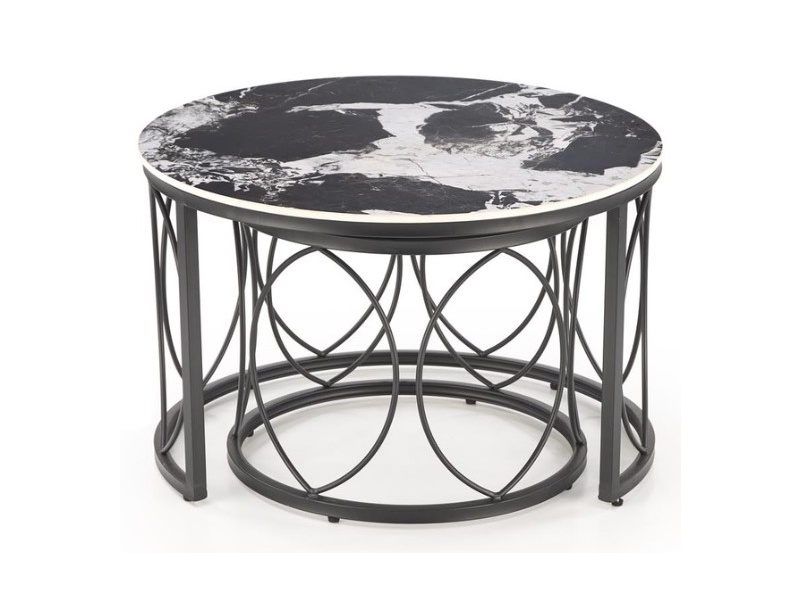 Set 2 masute ALEXANDRA din ceramica cu efect de marmura neagra, metal negru 70xH46cm / 50xH41cm