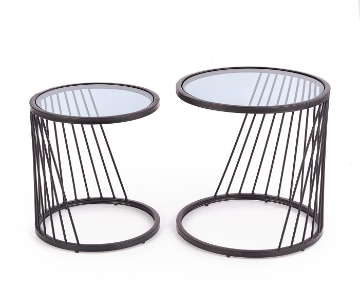 Set 2 masute ANTILLA din sticla transparenta, metal negru 50xH50cm / 42xH45cm