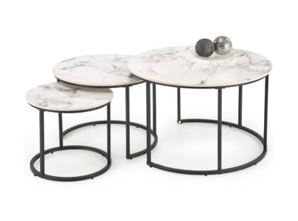 Set 2 masute DION BLACK din PAL cu efect de marmura neagra, metal negru 80xH48cm / 48xH42cm