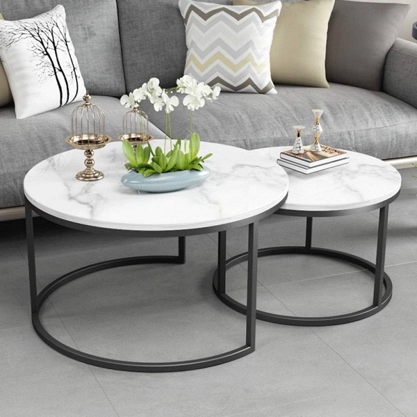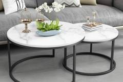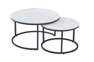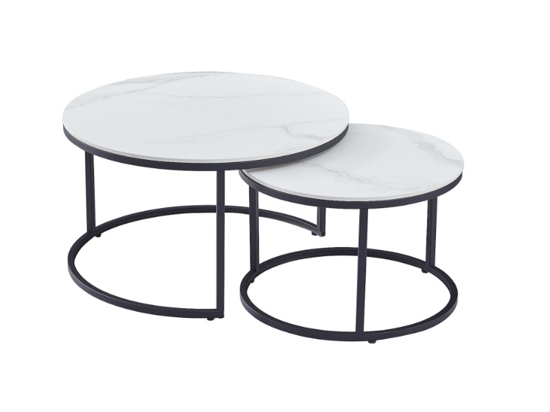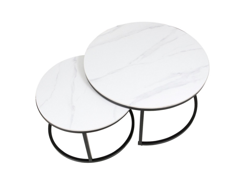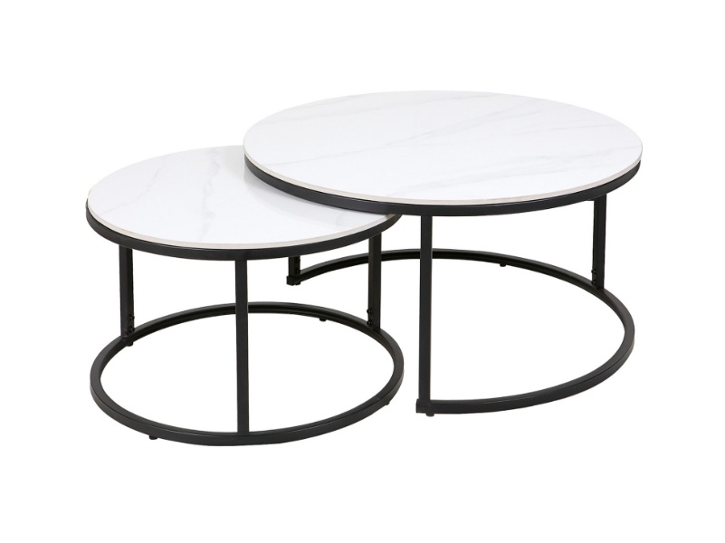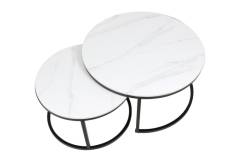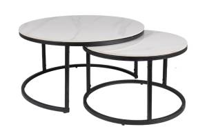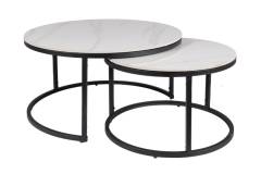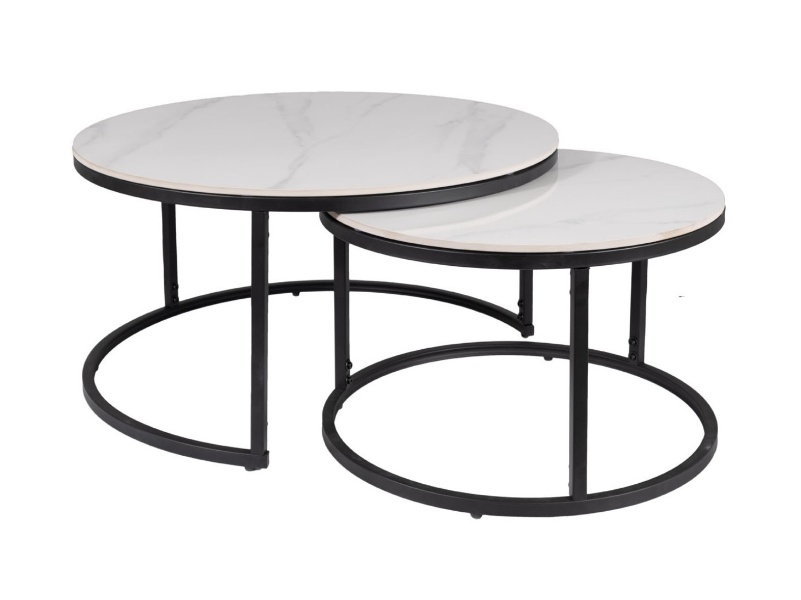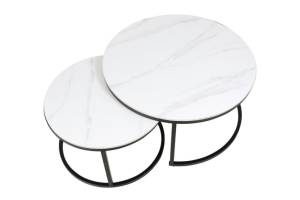 Set 2 masute FERRANTE C din ceramica cu efect de marmura alba, metal negru 60xH38cm / 80xH42cm