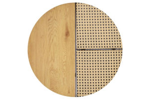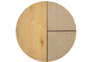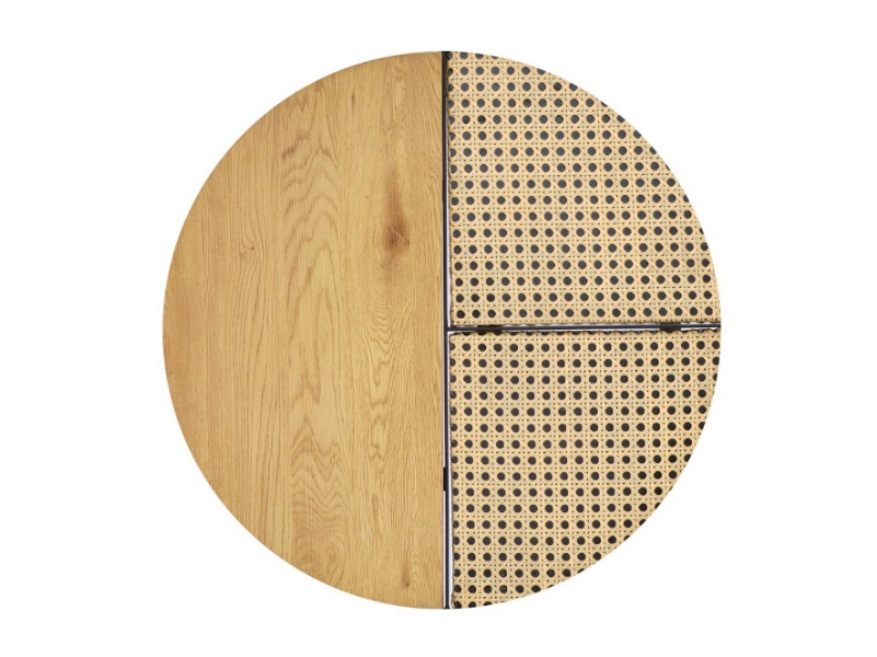 Set 2 masute GARMINA din MDF furniruit si rattan sintetic stejar, metal negru 50xH38cm / 70xH36cm