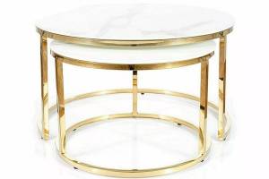 Set 2 masute MUSE din sticla securizata cu efect de marmura alba, metal auriu 60x40cm / 80x45cm