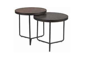 Set 2 masute PENELOPE BROWN-GREY din sticla calita cu efect de piatra bronz si gri, metal negru 50xH50cm / 50xH45cm