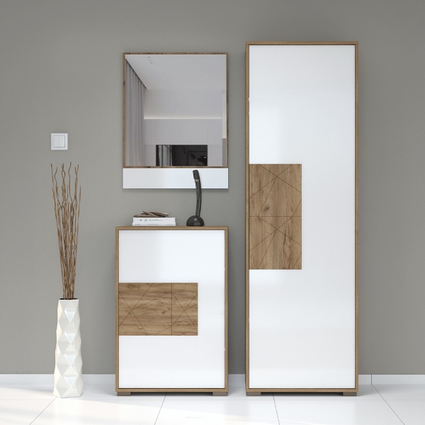 - suportul oglinzii este cu decor stejar Tobacco si alb lucios