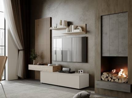 - comoda TV are 2 sertare, 1 usa si o polita neagra cu spatiu deschis