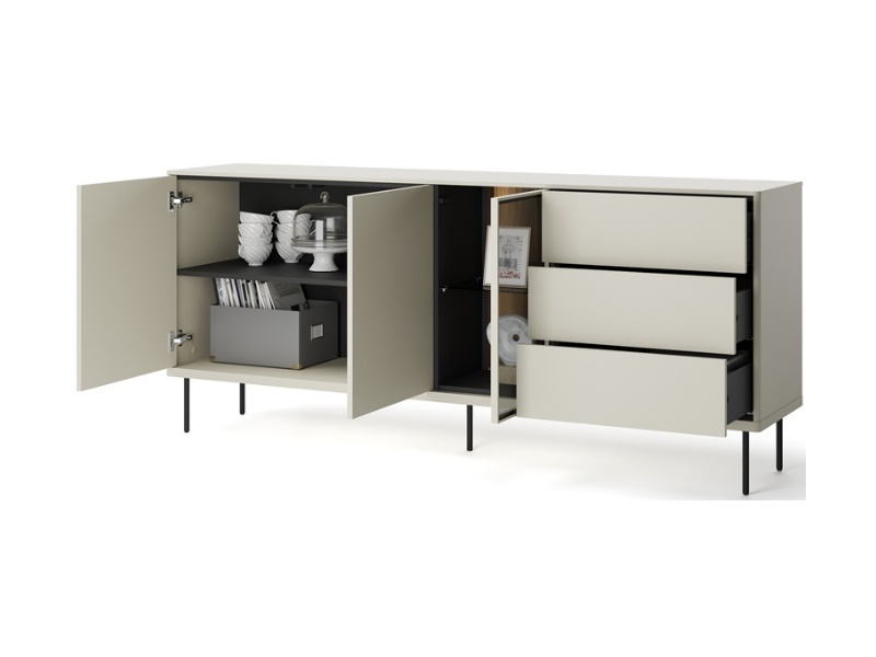 - comoda are 3 usi si 3 sertare pentru depozitare
