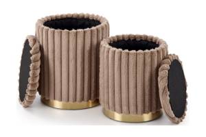 Set 2 tabureti FIDO material plusat-raiat cappuccino, cadru auriu, cu spatiu pentru depozitare 44xH36cm / 38xH31cm