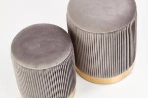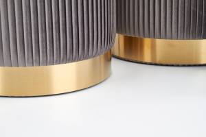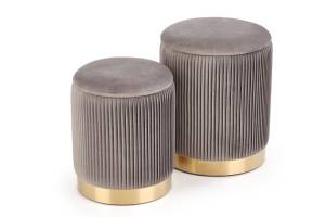 Set 2 tabureti MONTY catifea gri, cadru auriu, cu spatiu pentru depozitare 44xH36cm / 38xH31cm