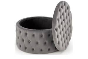 Taburet NUNEZ cu spatiu pentru depozitare, catifea gri, design chesterfiled 70xH40cm