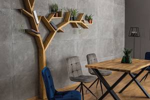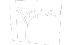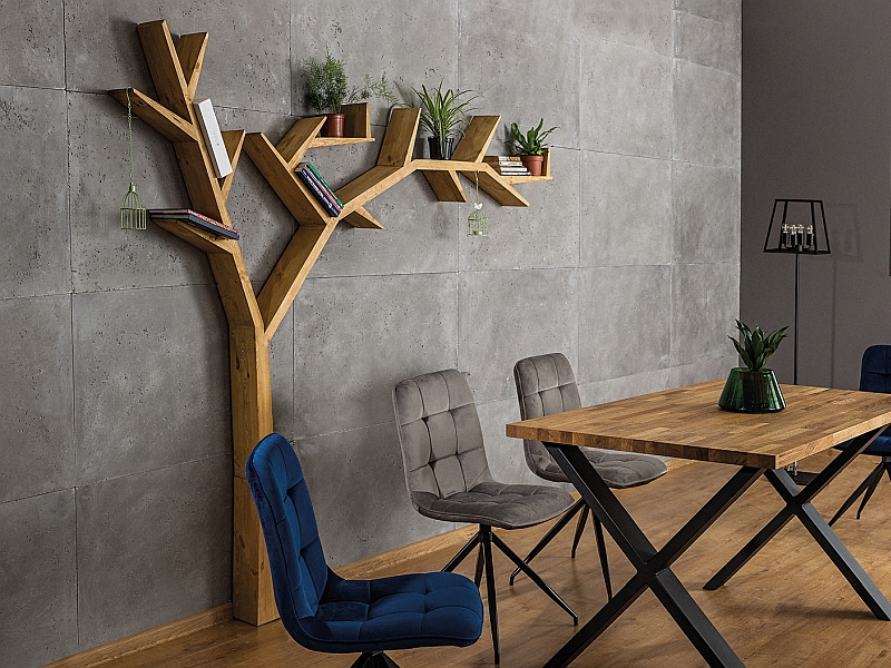 Raft in forma de copac cu ramurile (rafturile) pe partea dreapta cum privim din fata lui.