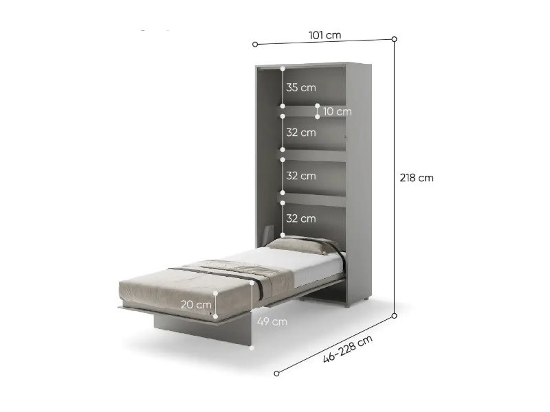 LENART BED CONCEPT BC-03 pat (90x200cm) rabatabil pe perete 101x46-228x218cm grey