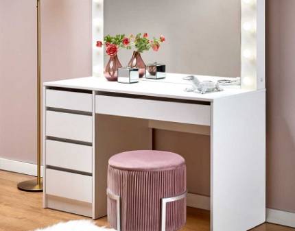 Masa de machiaj cu 5 sertare si oglinda cu led HOLLYWOOD XL WHITE 120x140x55cm alb