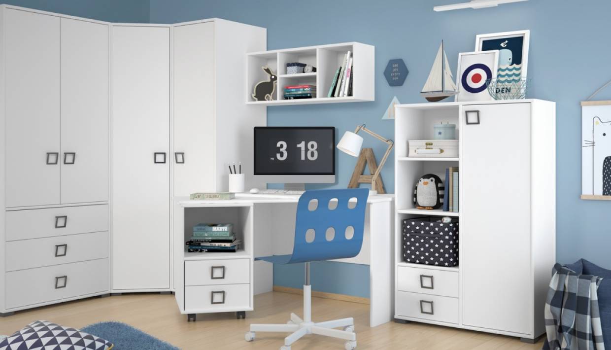 Alb imaculat și piese funcționale. Calitatea și designul se îmbină armonios în dormitorul White, pentru ca adolescentul tău să aibă parte de tot ce are nevoie.