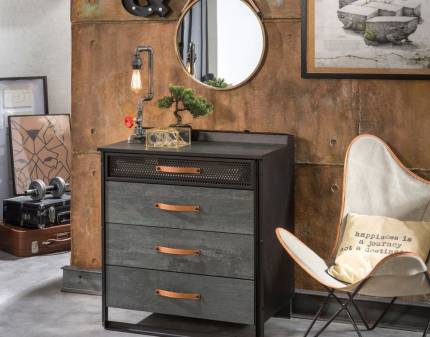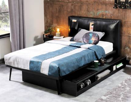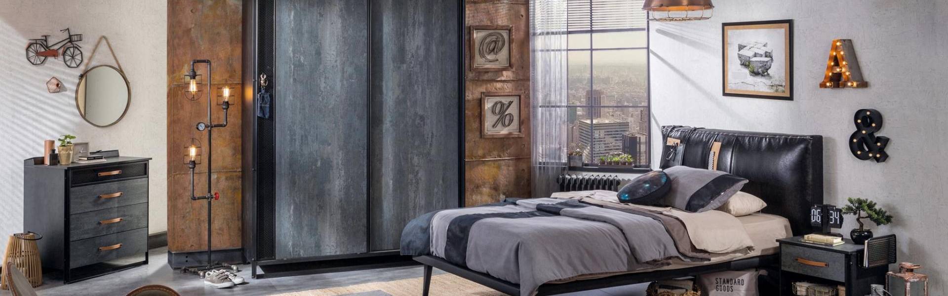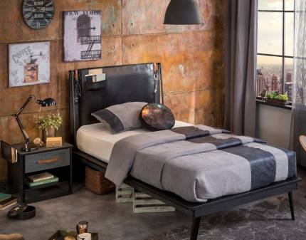 Stil de design industrial și multe elemente metalice negre, care completează aspectul. Alege un dormitor cu adevărat deosebit, din toate punctele de vedere!