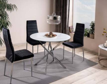 Masa extensibila ORBIT din MDF cu sticla securizata termorezistenta alba 120-160xH76cm