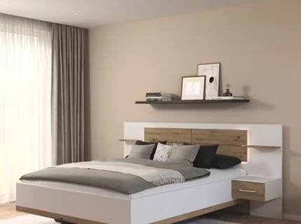 Cadru pat cu noptiere incorporate BOSTON EXTRA 160 / 180cm alb alpin/ stejar Artisan