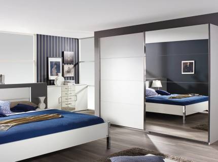 Dulap cu usi glisante MOITA 226x210x62cm alb alpin/ oglinda, maner crom