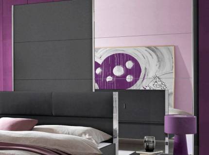 Dulap cu usi glisante MOITA 271x210x62cm gri metalic/ oglinda, maner aluminiu