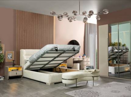 Pat tapitat cu lada pentru depozitare (180x200cm) PARIS