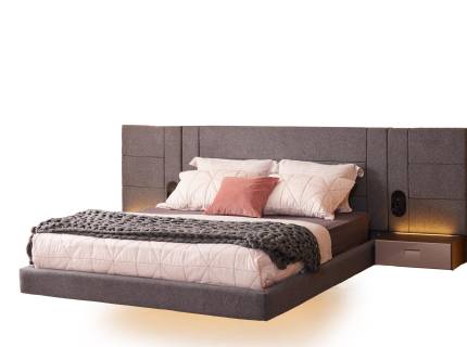 Pat tapitat PEGASUS 160x200 cm cu iluminare LED și design modern, efect de plutire