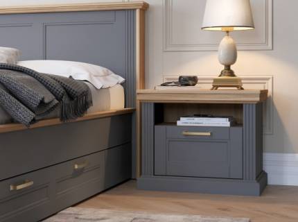 Noptiera cu 1 sertar si spatiu liber TARA GREY 62x52x43cm grafit/ Nuc Pacific