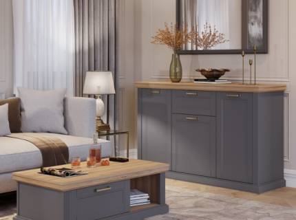 Comoda cu 1 usa si 3 sertare TARA GREY 138x91x48cm grafit/ Nuc Pacific